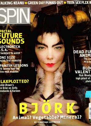 Apparently, everything includes bar-hopping with a "mate," making a DJ play the Beatles' "Yesterday" so that she could sing along, and getting drunk to the point of forgetting a chunk of the evening. "It's quite humiliating for a 31-year-old," she says. Because she is sniffling and rubbing her nose, and because alcohol alone does not usually keep people out until 10:30 A.M., I am wondering if drugs were involved in her pub crawl. "I come from a country where from the age of 15 you drink one liter of vodka every Friday straight from the bottle," she says. "I watch my granddad and my grandmother, and it's my pattern. It's a release that's been going on in my family for a thousand years. Purely from alcohol is how people lose themselves and put their little policeman off shift and run riot. I actually need it in my life." Finally answering my question (more or less), she says, "A lot of drugs basically just don't agree with me." Conversation with Björk, you come to learn, is no more straightforward than any of her songs. "l find it really interesting that elephants hide apples and stuff and wait for them to go bad, and then eat them and get pissed", she continues. "They actually make an effort to hide that apple behind that tree and then go on a bender." The idea sends her into a fit of giggles. "I saw this photograph of a drunk elephant once and it's the funniest thing I've ever seen." One gathers, then, that the reason Björk stayed out all night and most of the morning, the reason that she"s nursing a blinding headache, is this: "I'm a Viking, and elephants hide apples." Which, in fact, could very easily pass for the subject of a Björk song - a shimmering, flickering, dreamy tune that would be both deeply strange and not so strange at all.