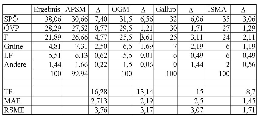 Die Prognosequalität des Marktes lag somit nicht nur hinter der des Jahres 1994, sondern auch noch hinter den von Meinungsforschungsinstituten abgegebenen Prognosen.