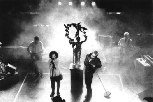 Der isländischen Version von Punk, die sich etwas später als in Europa entwickelte, fehlten zwar entscheidende soziologische Komponenten - einfach doof, wenn jeder, der will, eine Lehrstelle haben kann - musikalisch allerdings war Island ein äußerst gesunder Nährboden, wo doch bis Mitte der siebziger Jahre isländische Musik wesentlich daraus bestand, daß man mit anderen Texten die Pop-Musik aus England und USA nachspielte. Das war langweilig und ließ Ende der siebziger, Anfang der achtziger Jahre 30 bis 40 Bands entstehen. BJöRG : "Schon bevor es Punk gab, ging ich zujedem Konzert, das in Reykjavik stattfand - das waren unge- fähr zwei oder drei proJahr. Und plötzlich innerhalb eines Jahres gab esjede Woche ein Konzert mit drei oder vier Bands. Und jeder, den ich damals kannte, spielte in einer Band. Jeder." Der Bewegungsführer hieß Bubbi (sprich : Bübbi) Morthens, der eigentlich aus dem eher traditionellen Rock-Lager kam. Bubbi ist auch heute noch aktiv, und seine letzte LP hat sich in Island, obwohl es natürlich bei 240000 überhaupt möglichen Käufern keine intakte Plattenindustrie geben kann, 20000 mal verkauft - so gut wie noch keine andere Platte in Island. Aus dieser Zeit überlebte neben Bubbi auch Einar Orn, der früher einmal dessen Manager war und später seine eigene Band aufgemacht hat Kukl - von den heutigen Sugarcubes gehörten neben Einar auch noch Björg und Sigi dazu - hatte das Glück bei ihrem zweiten Konzert die zufällig in Island weilenden Crass im Publikum zu haben. Die zeigten sich tiefbeeindruckt von der Anarcho-Punk-Attitüde und der Schwarzen-Messe-Atmosphäre. Auf d em Crass-Label erschienen dann auch die Platten von Kukl, eine Möglichkeit, die sich den meisten isländischen Bands dieser Zeit nicht geboten hat und die auch wieder in der Versenkung verschwanden. Kukl existierte drei Jahre, hatte Indie-Charts-Erfolge